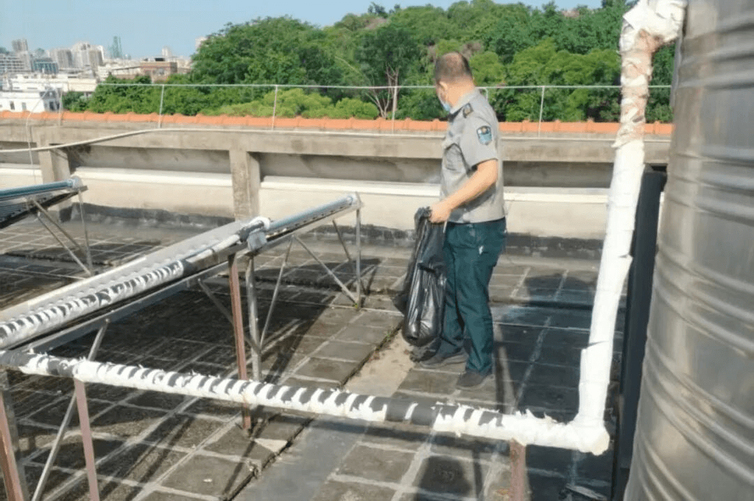同时,选用低毒环保的专用药剂,对院内重点区域开展细致消杀处理:在垃圾桶周边、卫生间角落、绿化带等蚊虫易聚集处喷洒药剂;对吊顶缝隙、下水道入口等隐蔽部位强化消杀,确保无死角、无遗漏,有效降低院内蚊虫密度。